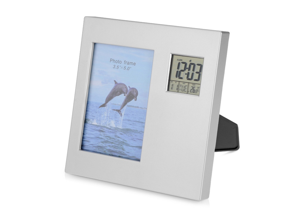 в наличии 3081 штЧасы с календарем, будильником, таймером, термометром и рамкой для фотографии 9х13 см. Есть возможность поменять положение цифрового табло с горизонтального на вертикальное, в зависимости от того, как поставлены часы. Тампопечать (1 цвет (цветные изделия)) на данный товар осуществляется бесплатно. Оплачивается только настройка оборудования в размере 8200 рублей на весь тираж.