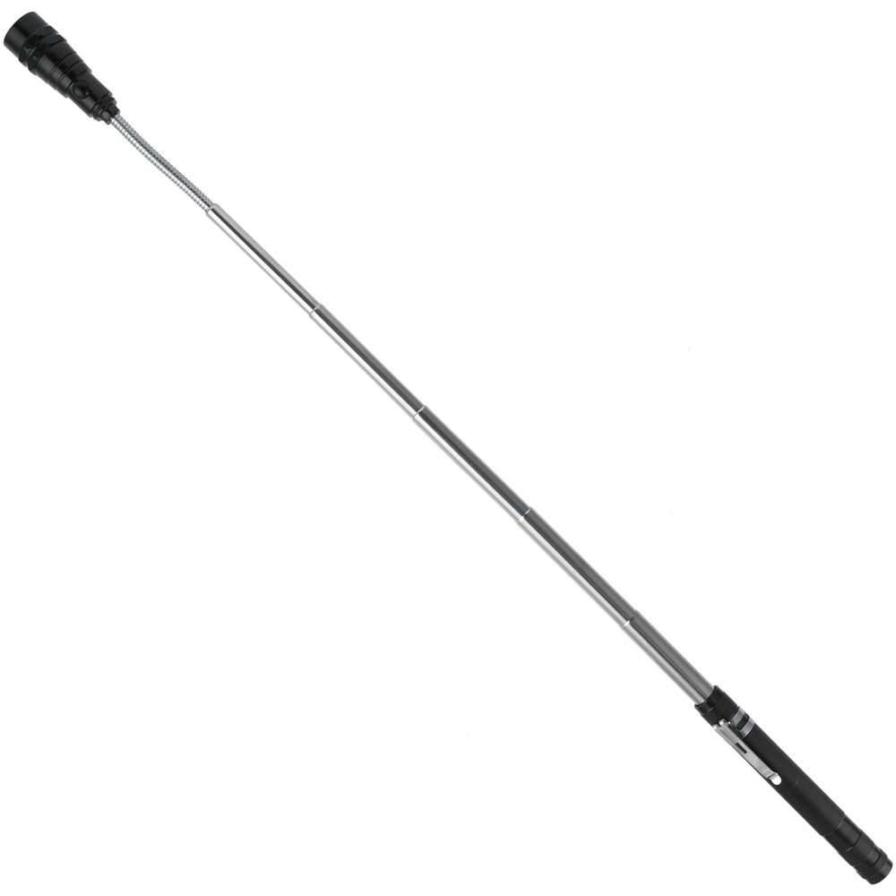 в наличии 3000 штТелескопический фонарь с магнитом — идеальное средство для освещения труднодоступных мест.Телескопическая ручка;Гибкое крепление излучателя;3 ярких светодиода;Магнит в излучателе позволяет поднимать предметы весом до 700 г;Клип на корпусе;Питание: батарейки LR44/A76/V13GA 1,5 В, 4 шт. (в комплект не входят).Поставляется в полиэтиленовом пакете.