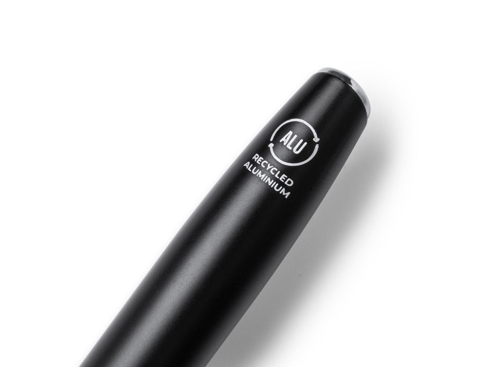 Элегантная шариковая ручка с корпусом из переработанного алюминия и металлическими деталями. Экологически чистая ручка. Синие чернила