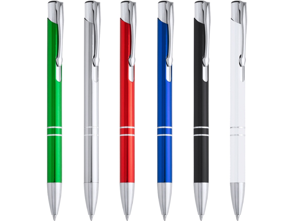 в наличии 15 штШариковая ручка с алюминиевым корпусом и кнопкой с анодированным покрытием. Синие чернила