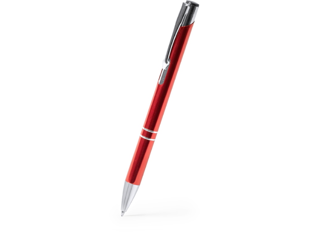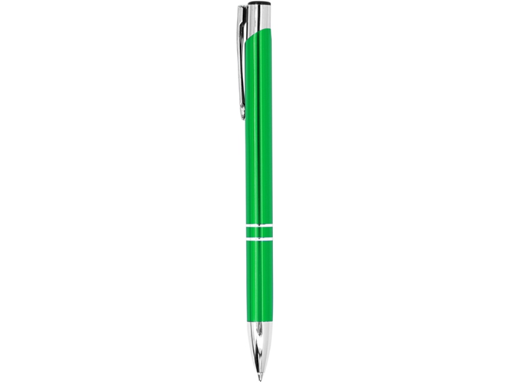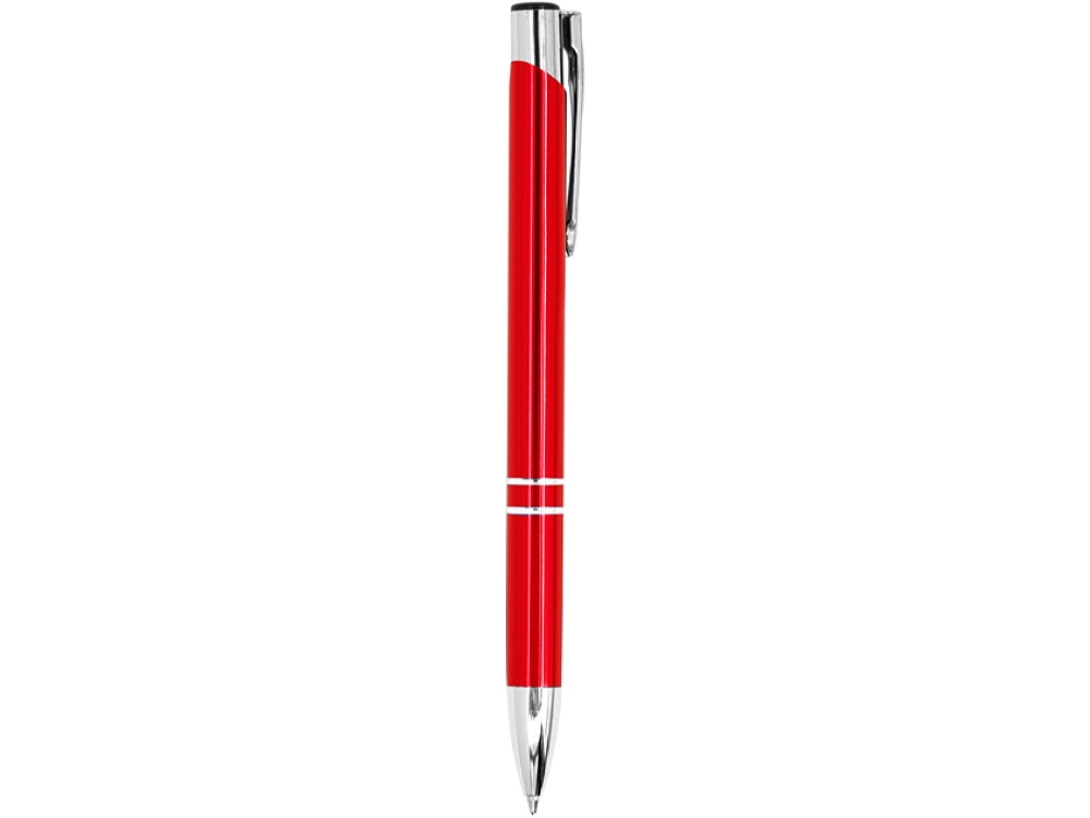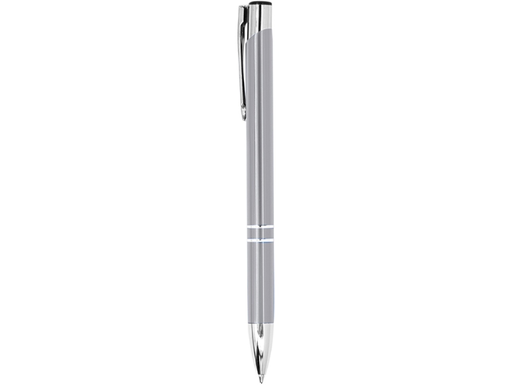 Шариковая ручка с алюминиевым корпусом и кнопкой с анодированным покрытием. Синие чернила