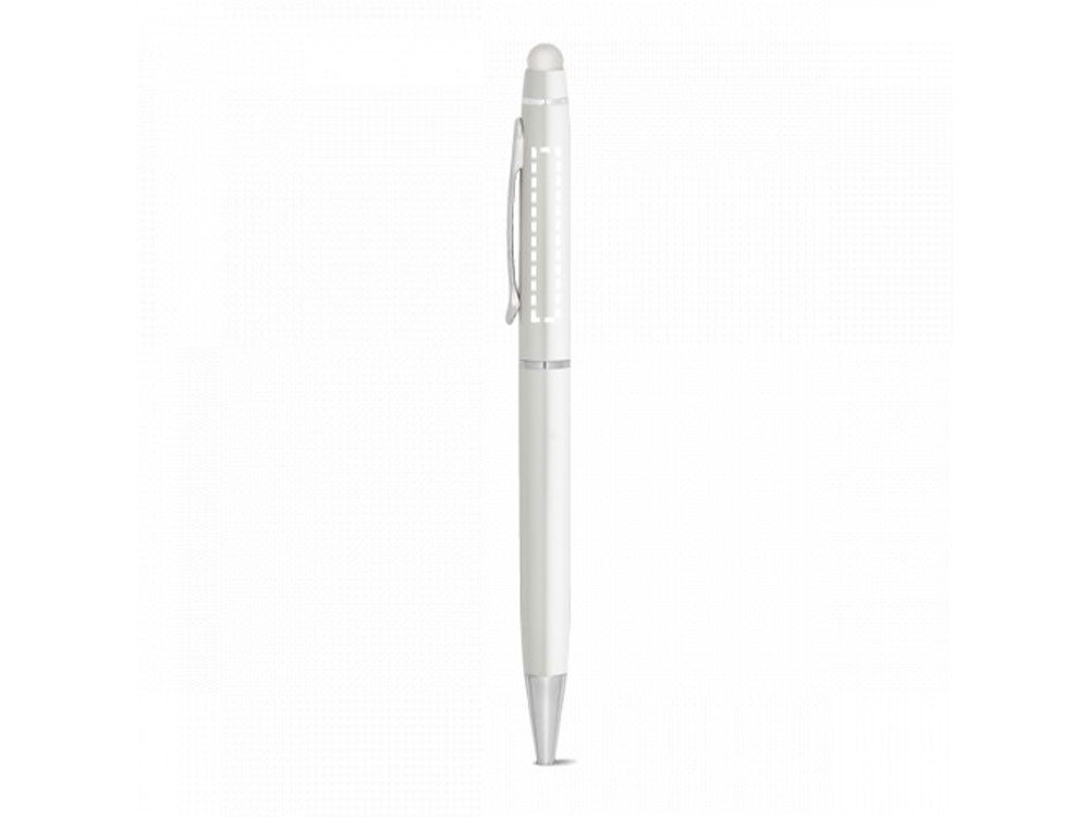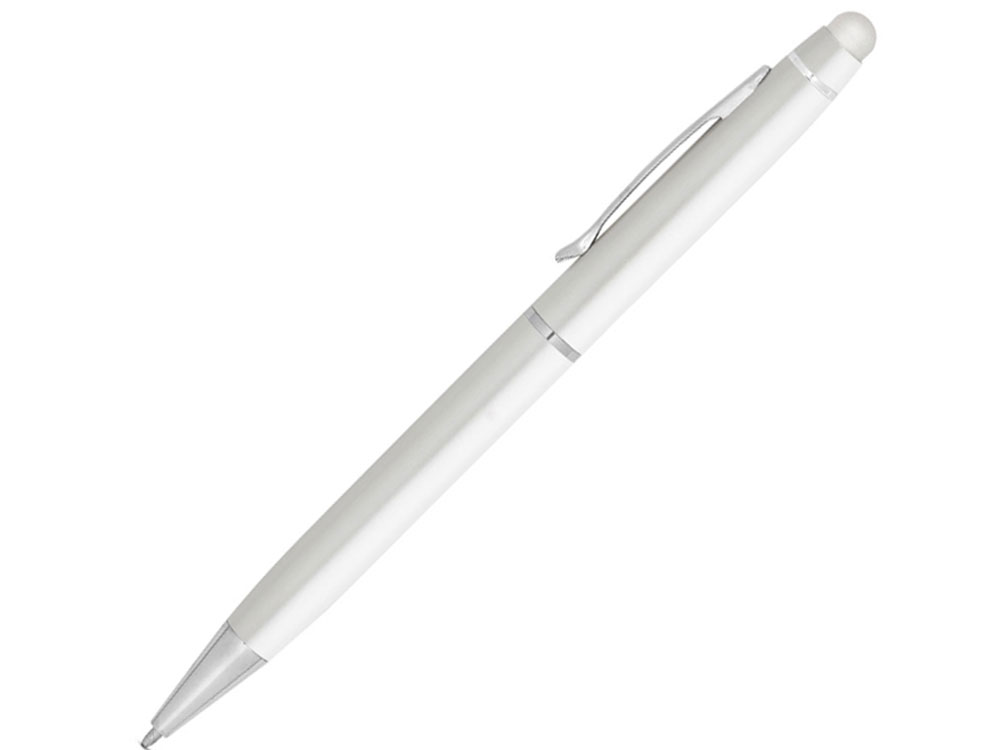 JULIE. Шариковая ручка из металла с стилусом, Белый. Металлическая шариковая ручка со стилусом. Поставляется в подарочном футляре. Футляр поставляется в разобранном виде. Вид нанесения, рекомендуемый поставщиком: гравировка, тампопечать Гравировка (CO2 лазер) (Без чернения) на данный товар осуществляется бесплатно. Оплачивается только настройка оборудования в размере 1100 рублей на весь тираж.