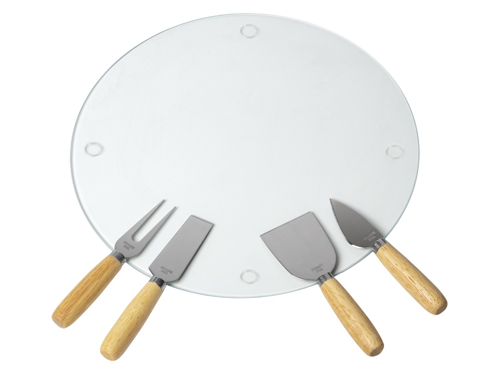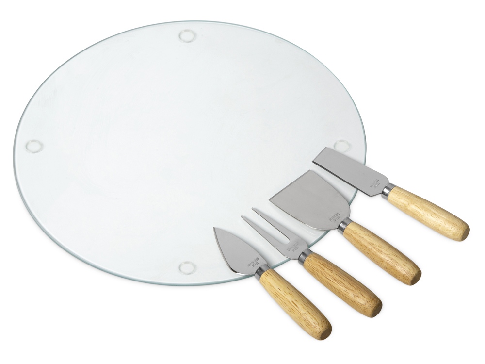 Набор для сыра от Eat&Bite состоит из стеклянной доски и ножей и предназначен для нарезки и подачи сыра разных сортов.