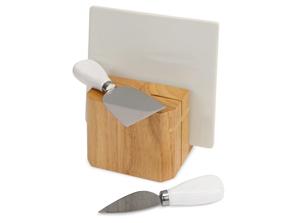 Набор для сыра Cheese Break предназначен для нарезки и подачи разных сортов сыра и любых других закусок. Ножи имеют белые керамические рукоятки, а доска полностью выполнена из керамики. Предметы устанавливаются в удобную деревянную подставку, в которой их можно хранить после использования.