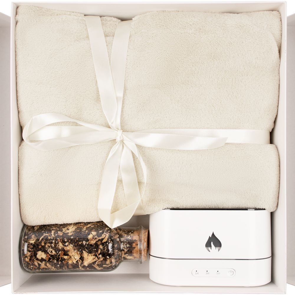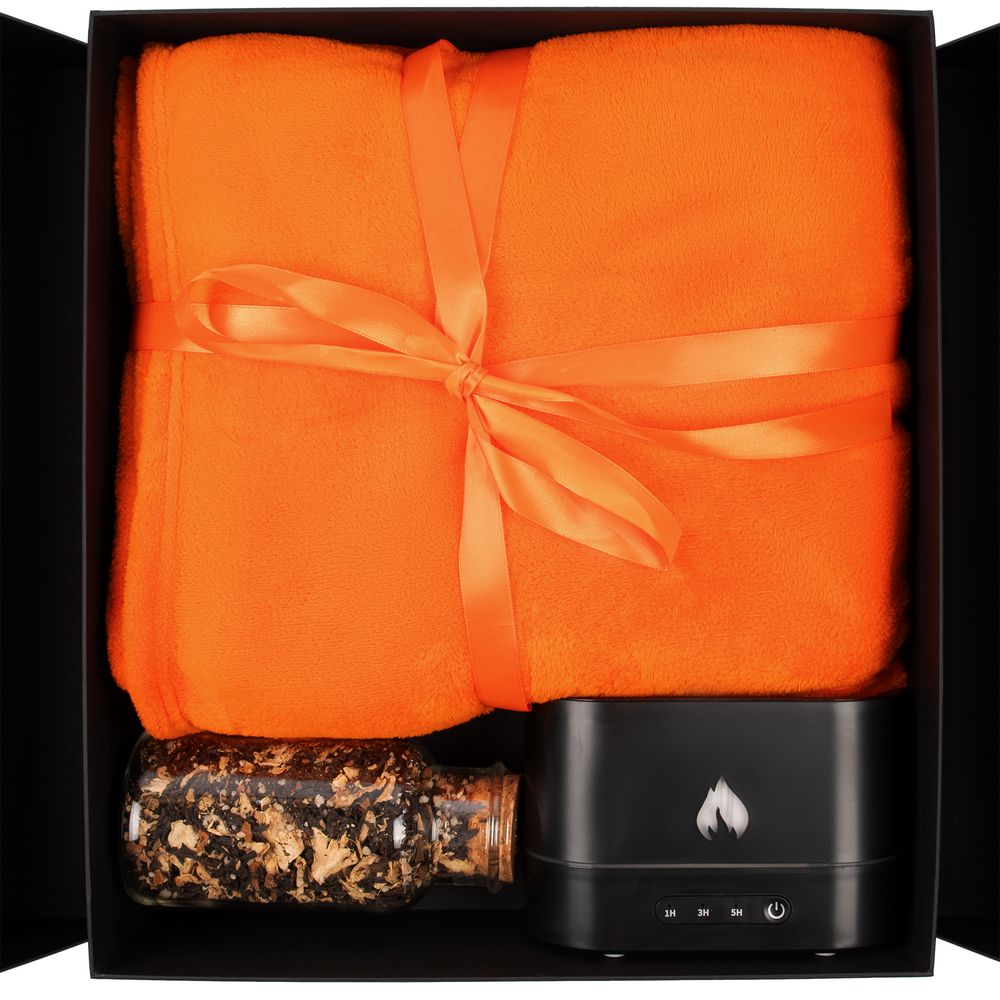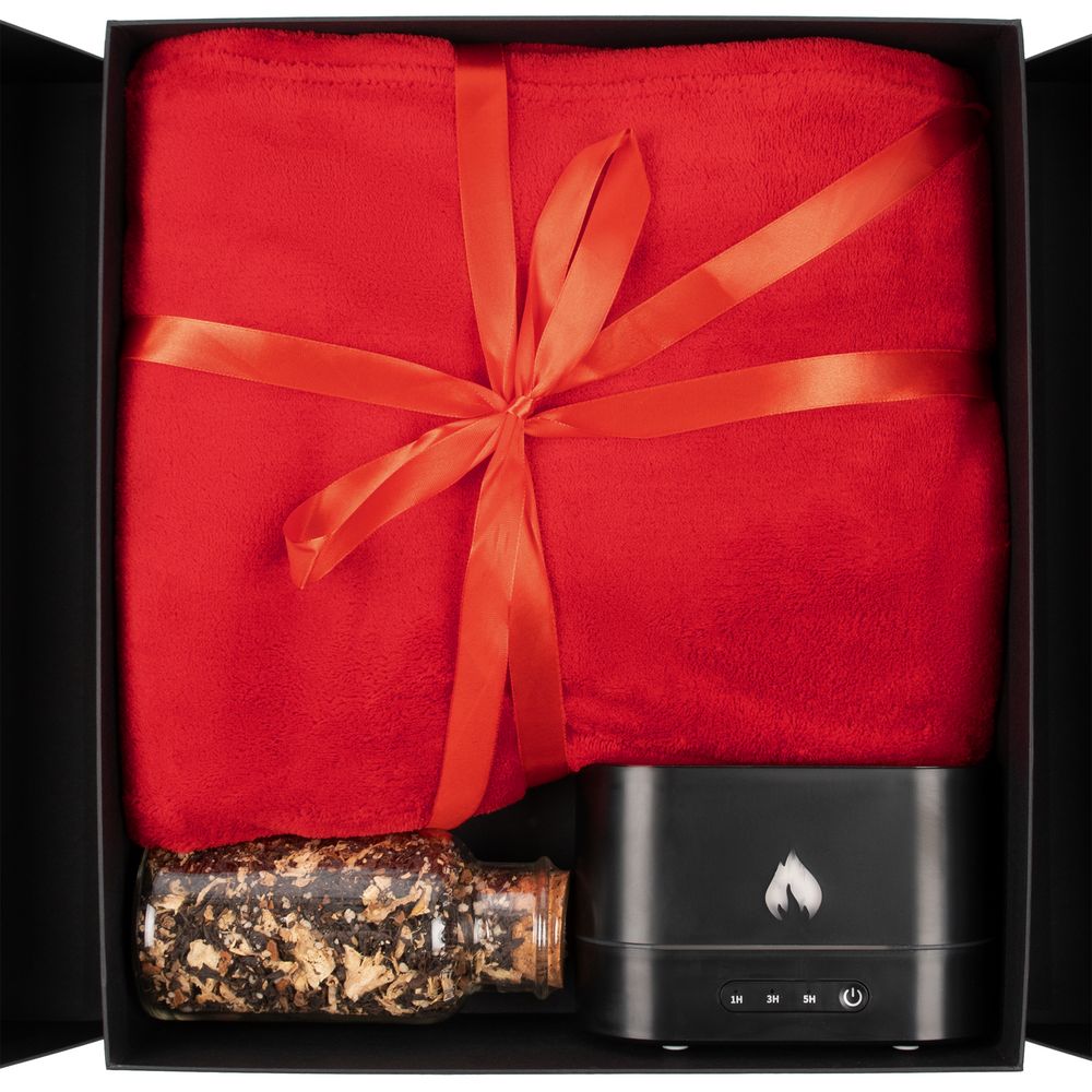 Мягкий флисовый плед, черный чай с медовыми гранулами, корицей и кусочками имбиря, а также увлажнитель воздуха с имитацией пламени — все самое необходимое для создания уюта в доме в подарочном наборе Housewarming.