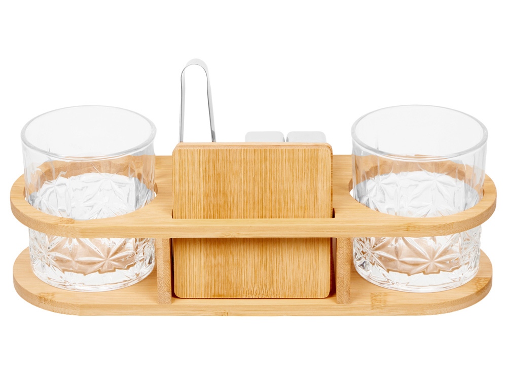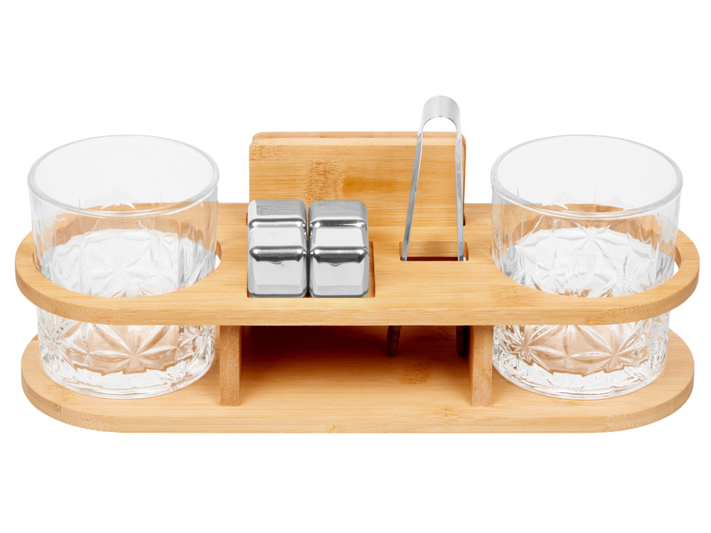 Набор для виски на бамбуковой подставке Boulevardier достаточно практичен - он состоит из 10 предметов, которые позволят правильно сервировать виски или какой-либо другой напиток. Все элементы набора компактно размещены на специальной подставке из бамбука, в которой для каждого предмета есть свое место — это позволяет экономить место на кухне или в столовой.