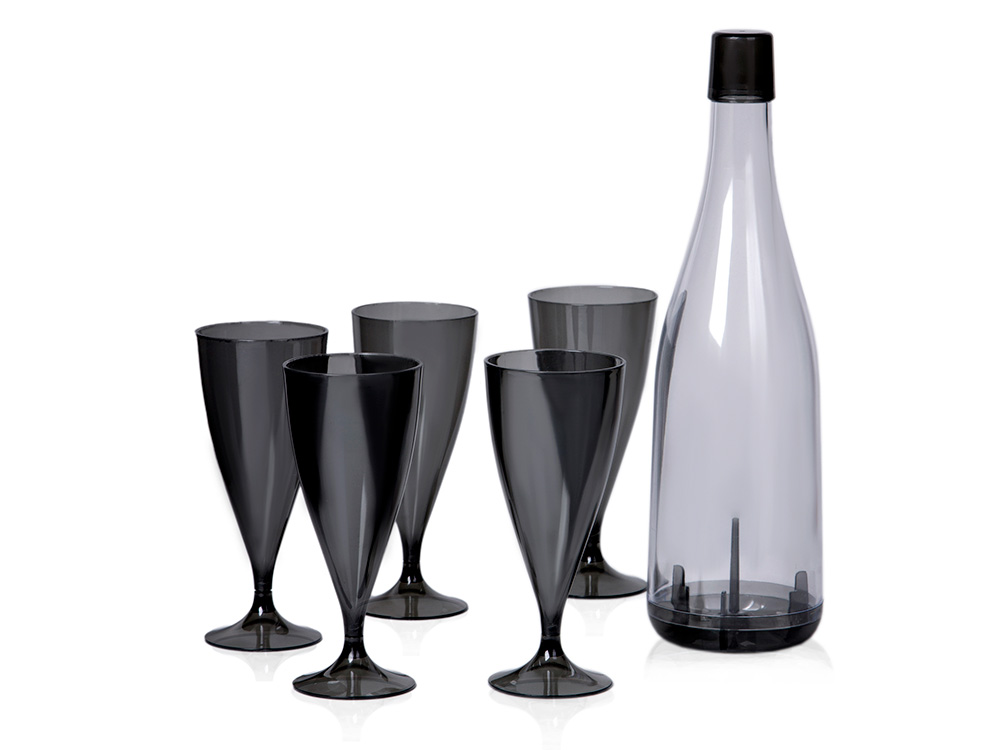 Бокалы упакованы в пластиковую бутылку со съёмным дном, которую удобно брать с собой на пикники.• Стильный дизайн