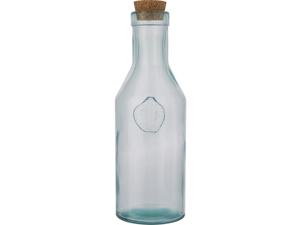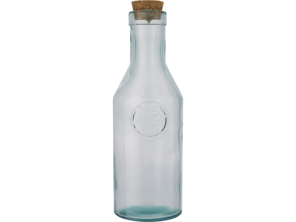 Стеклянный графин объемом 1000 мл с крышкой из пробки, изготовленный из 100% переработанного стекла, с эксклюзивным дизайном. Этот экологически устойчивый и модный графин идеально подходит для подачи воды, соков, масла или уксуса. Графин изготовлен из переработанных стеклянных бутылок. На изготовление переработанного стекла затрачивается меньше энергии, сырья и добавок, чем на изготовление традиционного стекла. Графин можно мыть в посудомоечной машине.