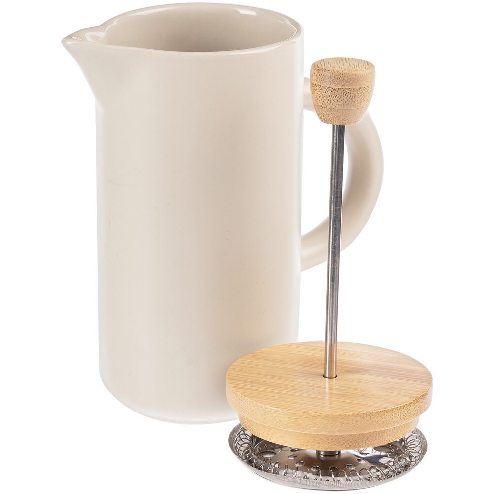 Френч-пресс Keramikk выполнен из керамики, благодаря чему он хорошо сохраняет температуру напитка, не обжигает руки и прост в уходе. Контраст бамбуковой крышки и керамики выглядит действительно интересно и необычно.Емкость 350 мл.