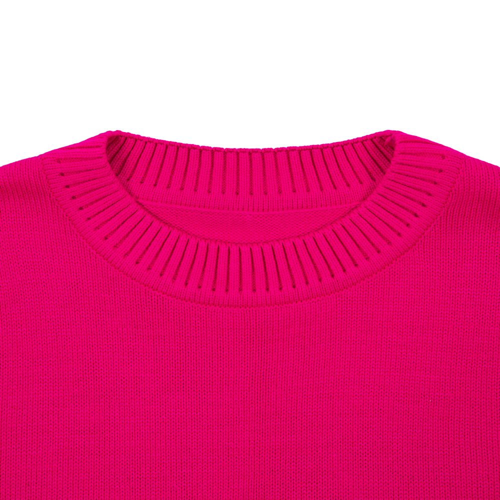 Джемпер чулочной вязки с круглым воротом и контрастной строчкой.