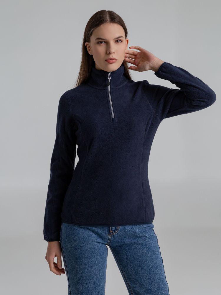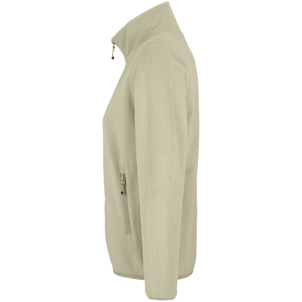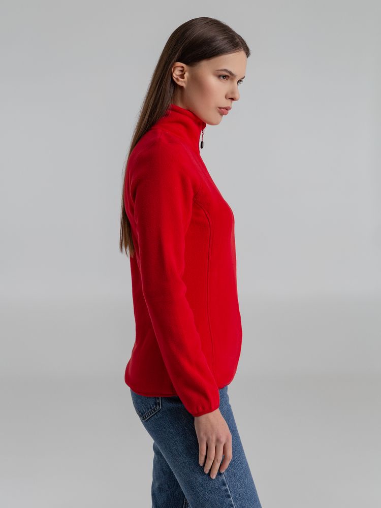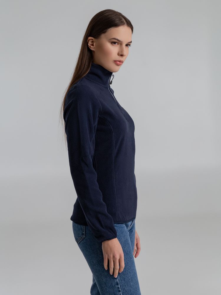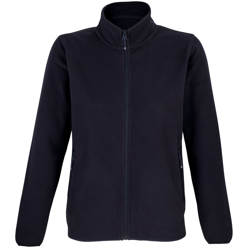 Флисовая женская куртка с воротником-стойкой. Застежка-молния в тон ткани, боковые карманы на молнии. Укрепляющая тесьма по вороту. Края рукава и низ изделия отделаны эластичной резинкой.