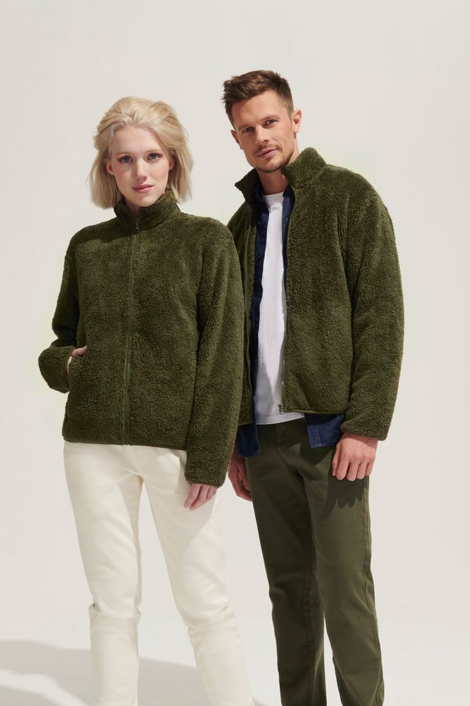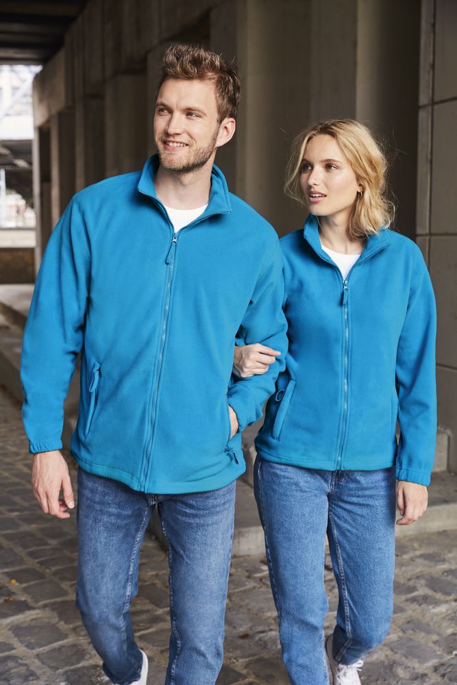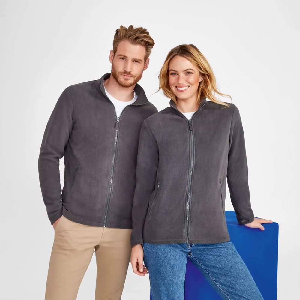 Куртка унисекс из флиса с застежкой-молнией и воротником-стойкой.