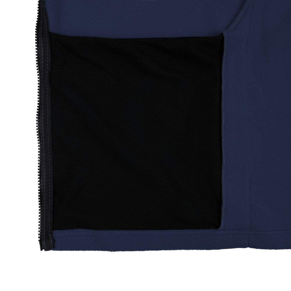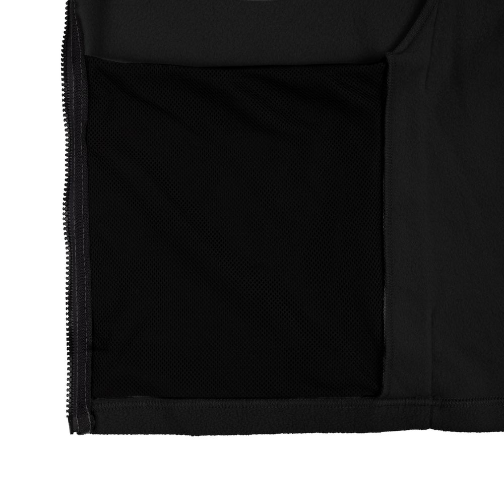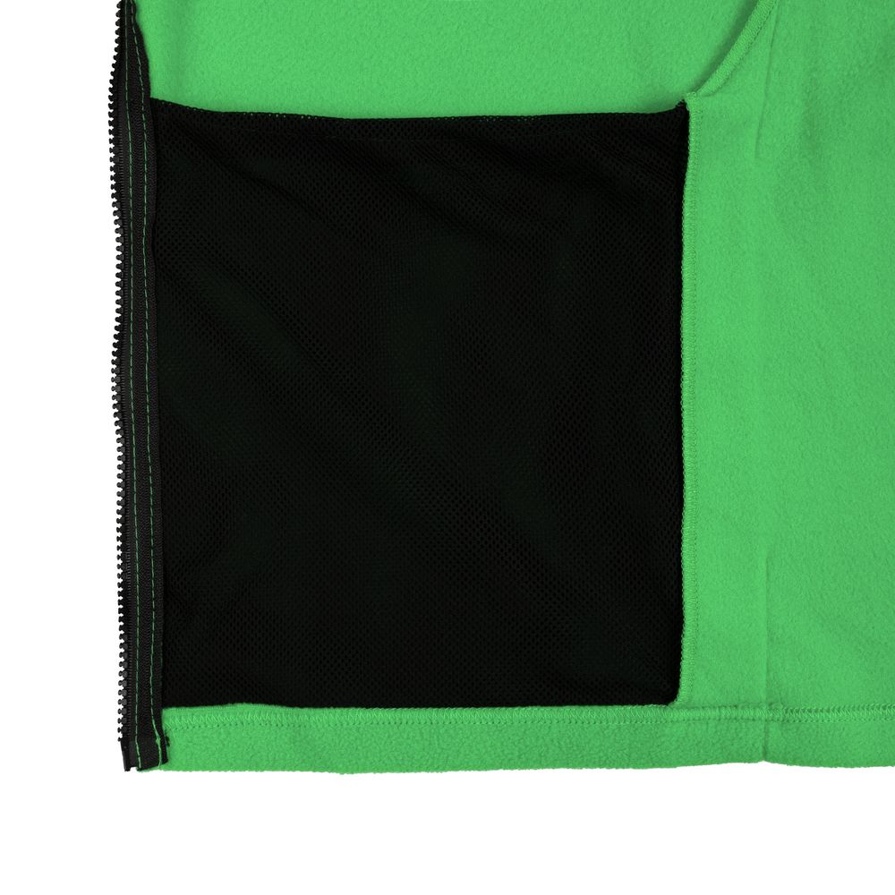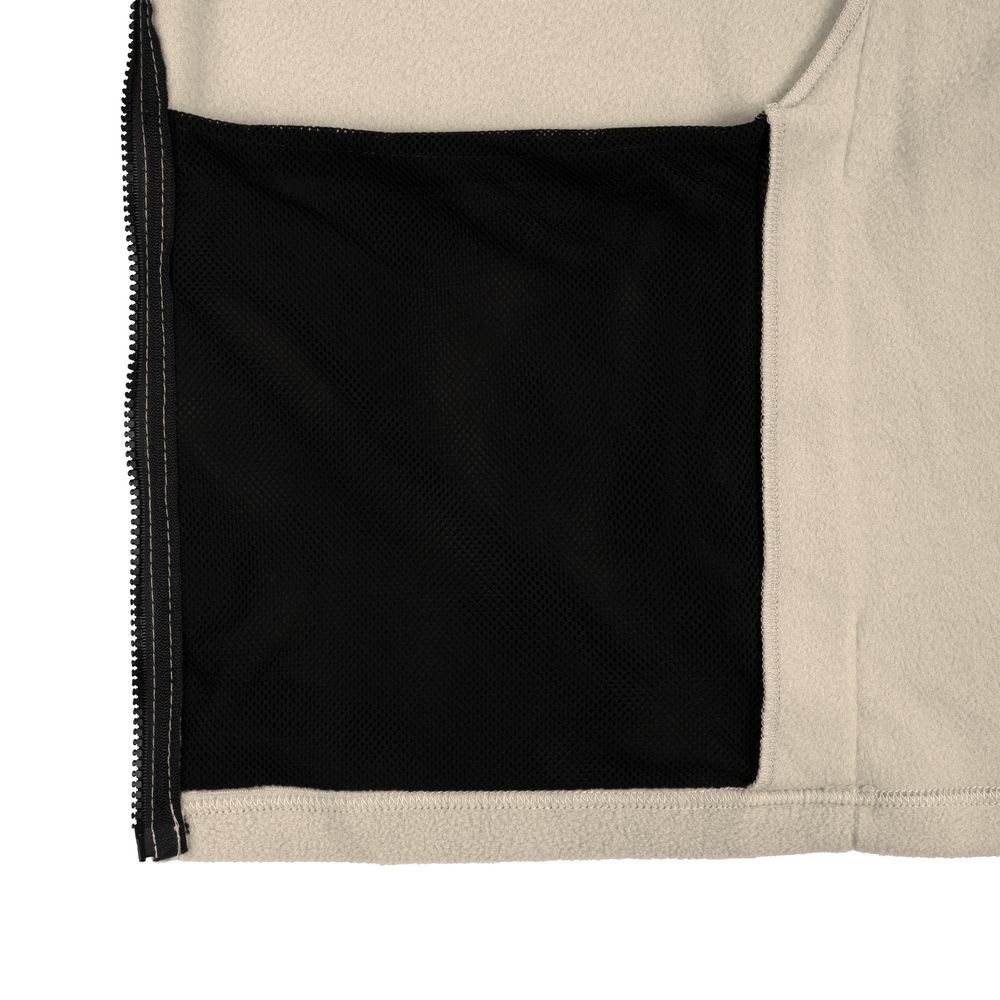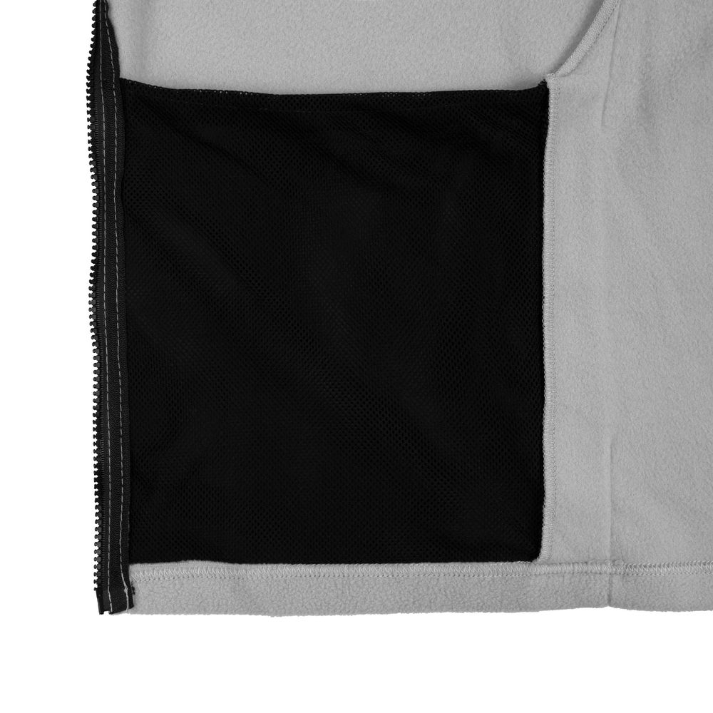 Два кармана с сетчатой подкладкой расположены в боковых швах, которые немного смещены вперед, — так удобней засовывать руки. Они достаточно глубокие, чтобы положить телефон, очки и другие нужные вещи.Молния, фурнитура, обтачка горловины и подкладка карманов выполнены в черном цвете.
