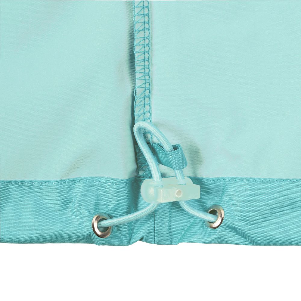 - Карман куртки служит сумочкой для нее: при необходимости ветровку можно компактно сложить, застегнуть карман на молнию и использовать пришитую эластичную тесьму, чтобы носить сложенную ветровку с собой на поясе.