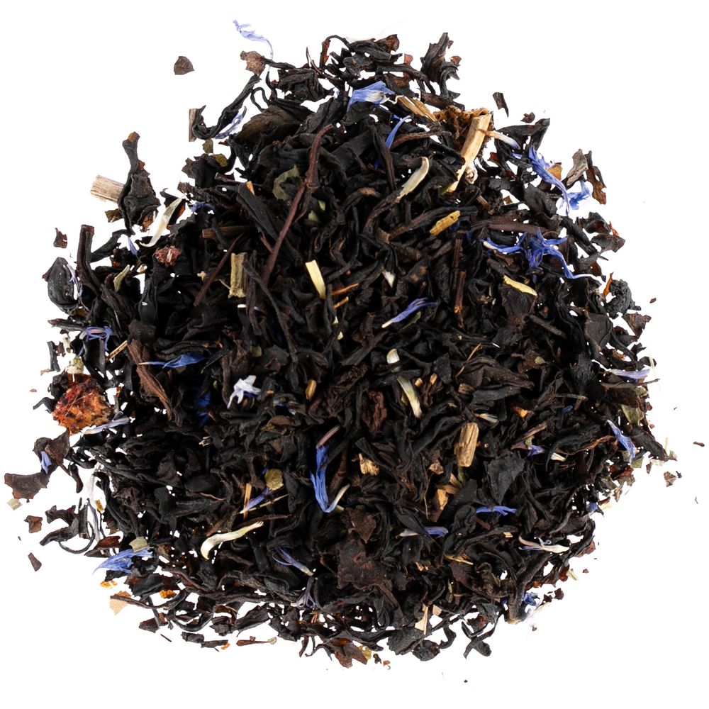 Черный индийский чай, лист брусники, мальва, календула, можжевельник, боярышник, клюква, мята, ароматизирован маслами.