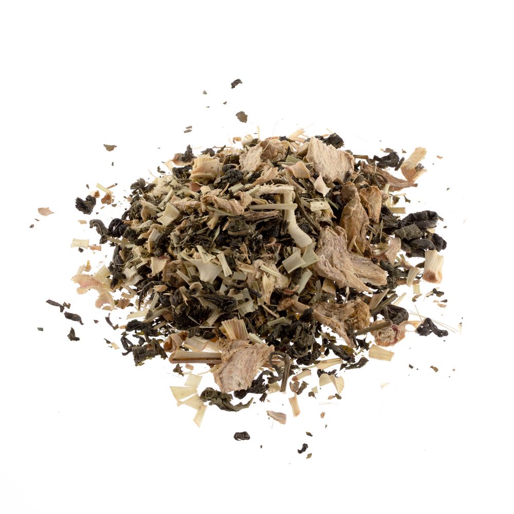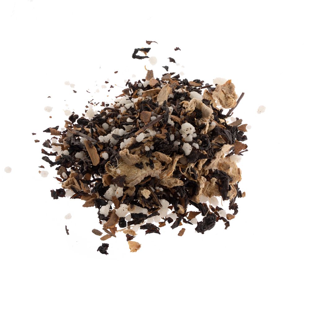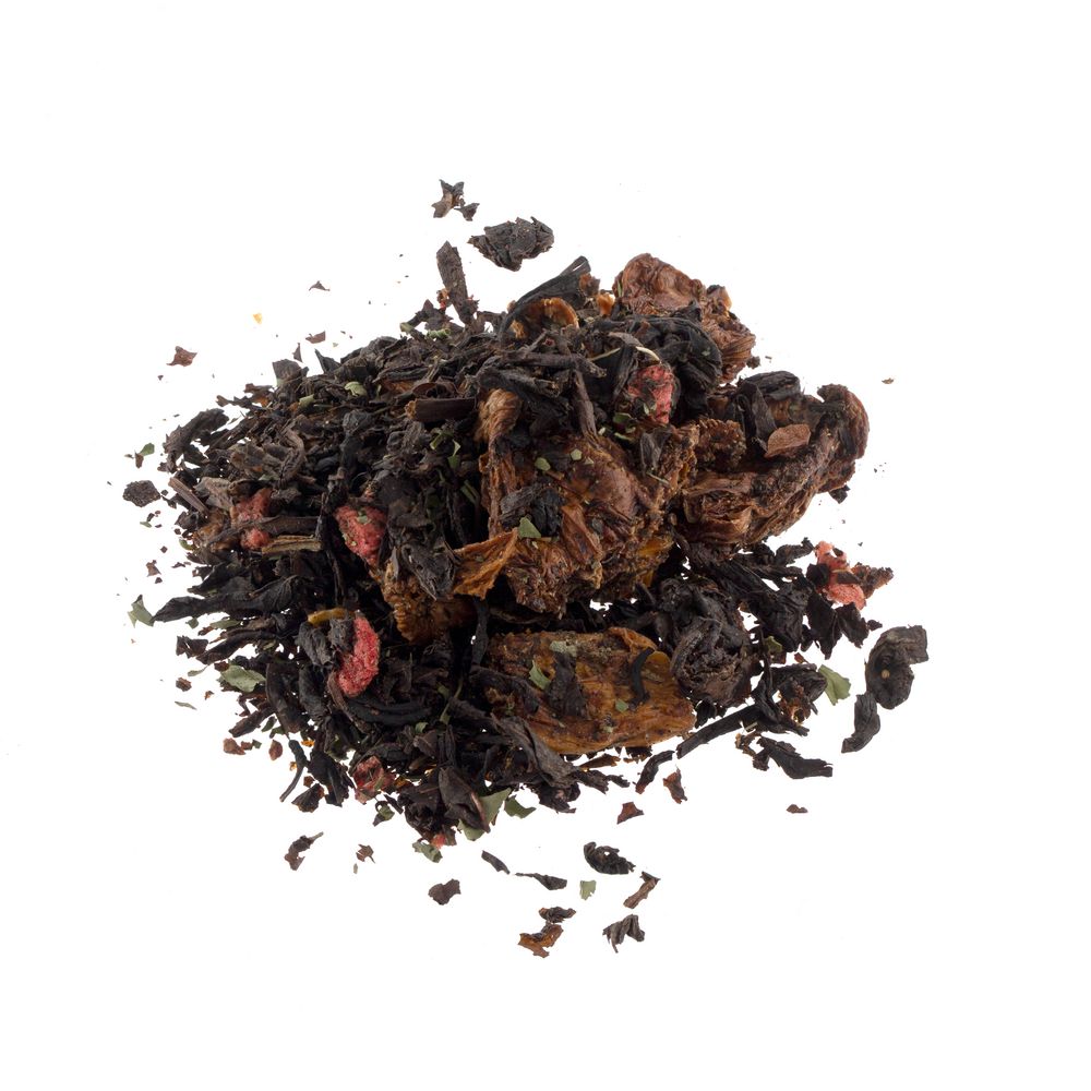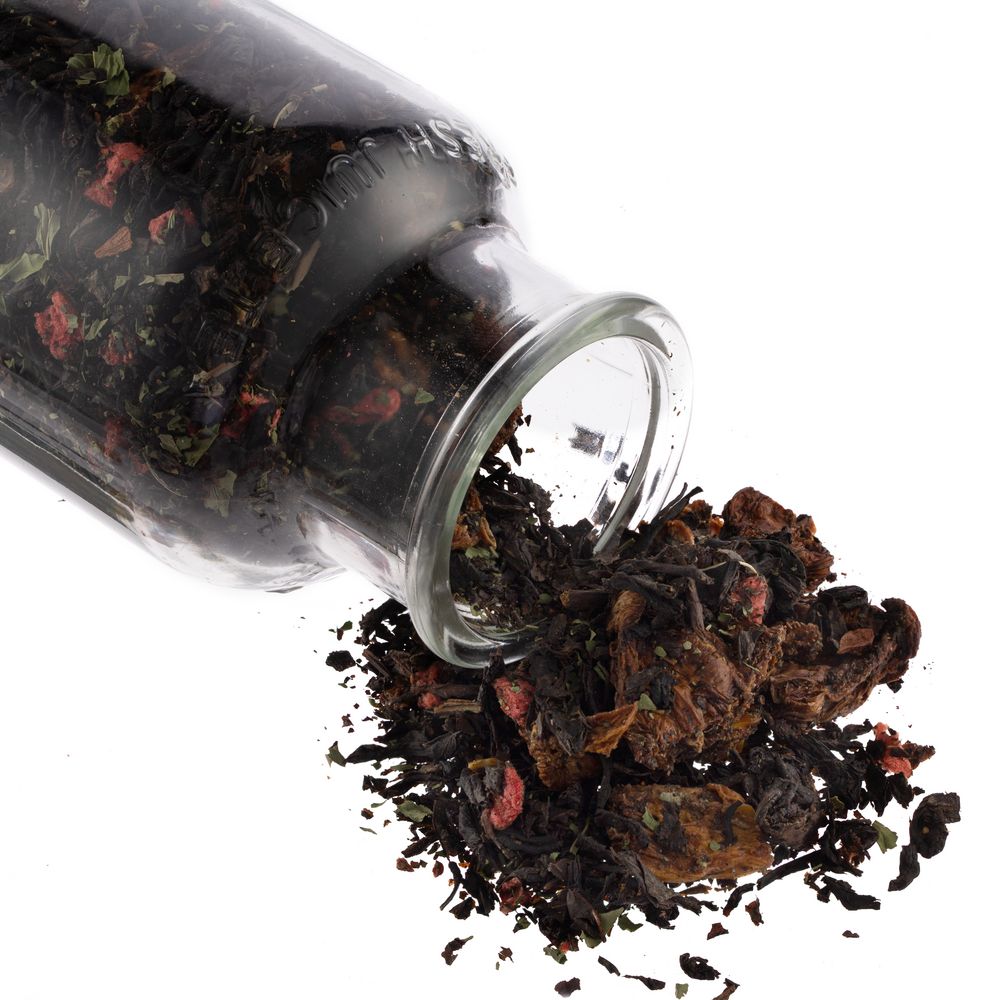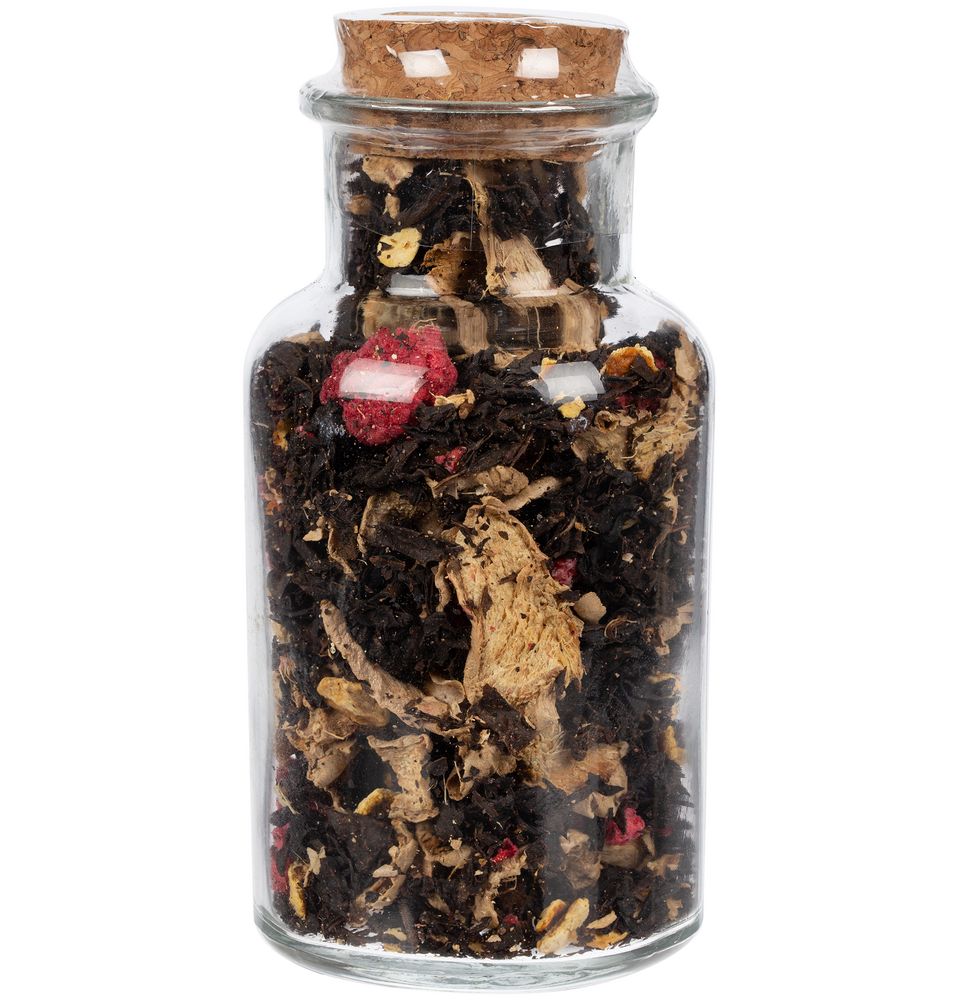 Черный крупнолистовой чай с апельсиновой цедрой, кусочками имбиря и сублимированной малиной обладает многогранной палитрой вкуса и аромата. В состав чая входят только натуральные ингредиенты, а чайные листья предварительно вымачиваются в имбирном соке: вкус напитка становится особо насыщенным и обогащенным.