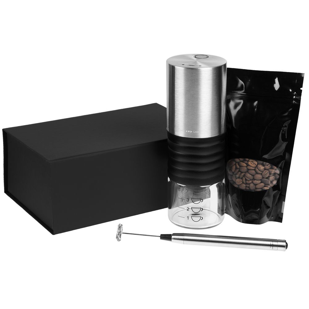 С портативной кофемолкой и вспенивателем молока можно приготовить множество вариаций напитка на основе качественного зернового кофе с плотным вкусом, а также нотками макадамии и горького шоколада. -