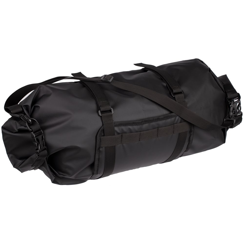 Состоит из двух частей: гермомешка и чехла с элементами крепления для фиксации на багажник. Основная часть сумки — прочный мешок из водоотталкивающего материала, который после заполнения фиксируется с двух сторон фастексами. Благодаря продуманной конструкции внутреннее содержимое сумки защищено от промокания.