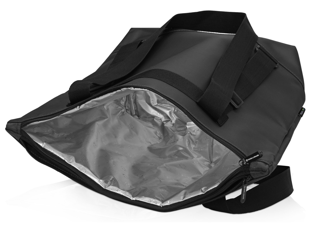 Сумка-холодильник из переработанного пластика. Вмещает 6 банок по 0.33 л. Закрывается на молнию. Удобная ручка для переноски. Термотрансфер (1 цвет (цветные изделия)) на данный товар осуществляется бесплатно. Оплачивается только настройка оборудования в размере 10000 рублей на весь тираж.