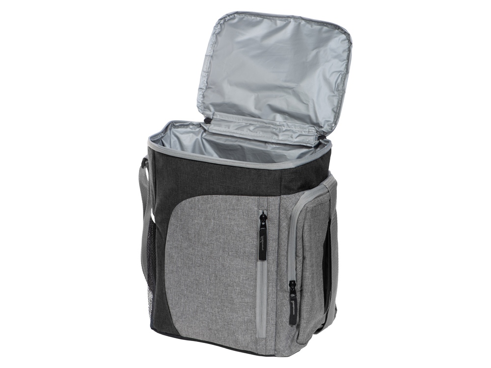 Малая изотермическая сумка Breeze с фронтальным карманом и боковым карманом-сеткой превосходно подойдет для индивидуального, ежедневного использования. Термосумка отлично сохраняет свежесть продуктов в течение нескольких часов. При изготовлении сумки использован высококачественный внутренний слой из водонепроницаемого материала PEVA.