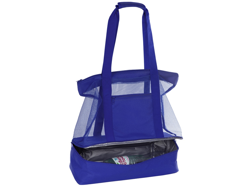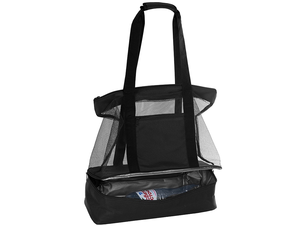 Вместительная пляжная сумка с отделением -холодильником внизу. Удобно брать холодные напитки на пляж. Сетчатая ткань способствует просыханию пляжных вещей. Комфортные длинные ручки фиксируются вместе застежкой липучкой. Все отделения и наружный карман для мелочей застегиваются на молнию. Благодаря большой вместительности сумку можно использовать для шоппинга. Термотрансфер (1 цвет (белые изделия)) на данный товар осуществляется бесплатно. Оплачивается только настройка оборудования в размере 8200 рублей на весь тираж.