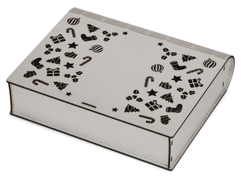 в наличии 305 штПодарочная коробка в виде книги с новогодним дизайном удивит получателя подарка своим запоминающимся дизайном. Внутренний размер 21,5 х 13,5 х 6 см. Гравировка (CO2 лазер) (Без чернения) на данный товар осуществляется бесплатно. Оплачивается только настройка оборудования в размере 1100 рублей на весь тираж.