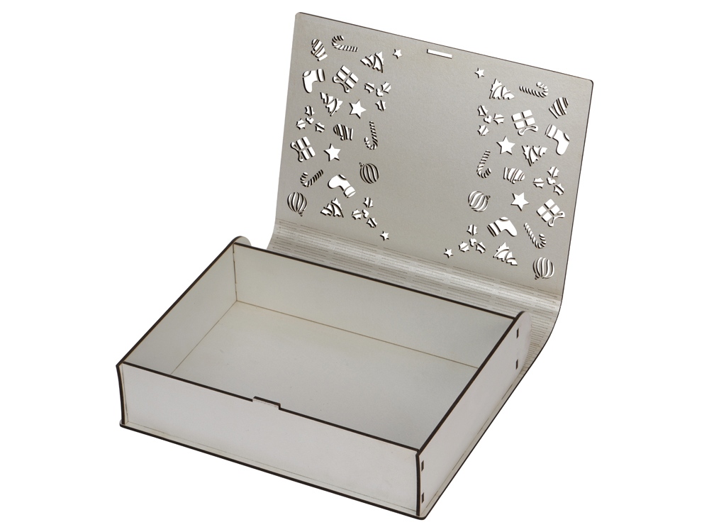 Подарочная коробка в виде небольшой шкатулки подходит для нанесения информации или логотипа на крышке. Орнамент в виде звездочек на крышке украсит ваш подарок, а если внутрь положить несколько электронных свечей, то тени от света свечей оставят причудливые узоры на стенах и потолке. Оригинальная подарочная упаковка Шкатулка - отлично подойдет как для новогодних подарков, так и для презентов по любому другому поводу. Гравировка (CO2 лазер) (Без чернения) на данный товар осуществляется бесплатно. Оплачивается только настройка оборудования в размере 1100 рублей на весь тираж.