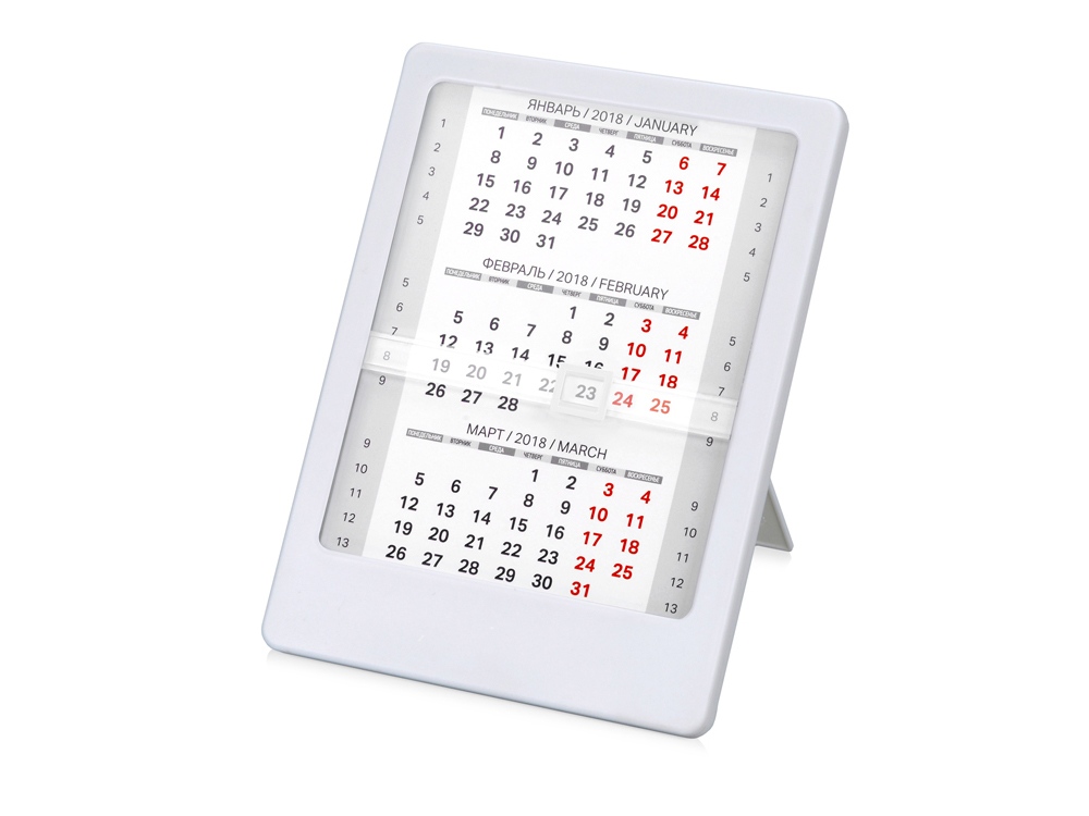 Настольный календарь на 2020 год выполнен из качественного пластика и имеет возможность менять календарную сетку на квартал. На пластиковый корпус прекрасно наносится логотип и символика компании. Цвета в ассортименте. Тампопечать (1 цвет (белые изделия)) на данный товар осуществляется бесплатно. Оплачивается только настройка оборудования в размере 7300 рублей на весь тираж.