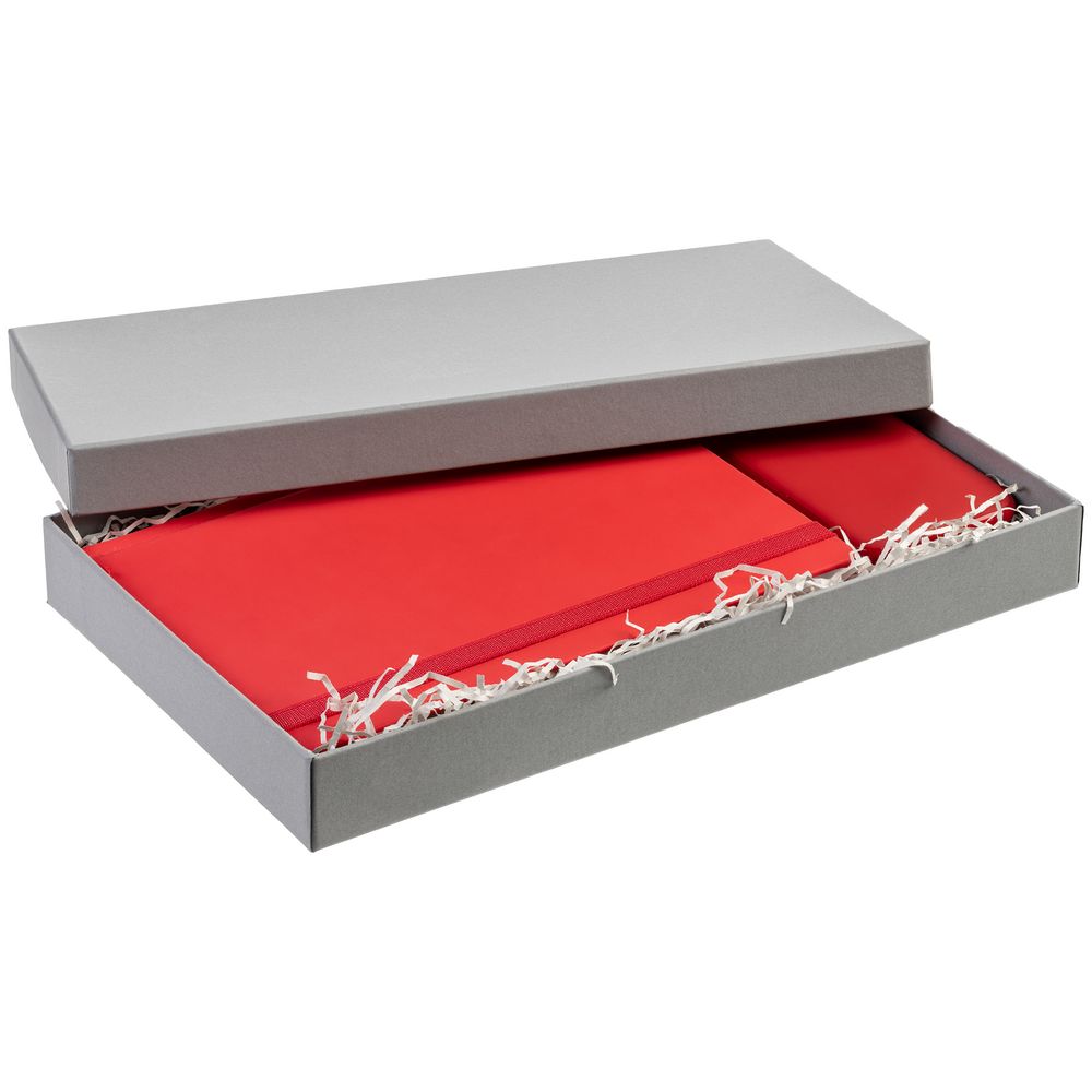 Коробка выполнена из переплетного картона, кашированного дизайнерской бумагой Malmero, с крышкой на лентах.