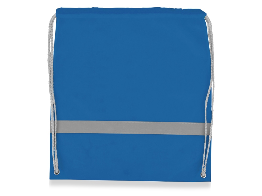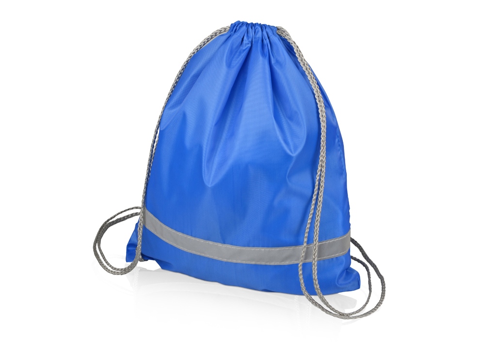 Рюкзак-мешок со светоотражающей полосой и серыми шнурками. Трафаретная печать (1 цвет (цветные изделия)) на данный товар осуществляется бесплатно. Оплачивается только настройка оборудования в размере 10000 рублей на весь тираж.