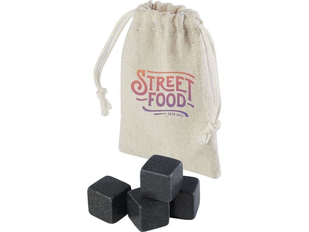 Набор из 4 многоразовых каменных кубиков для охлаждения напитков, поставляемых в льняном мешочке. Эти кубики быстро и эффективно охлаждают напитки, сохраняя при этом их вкус. Basalt stone.