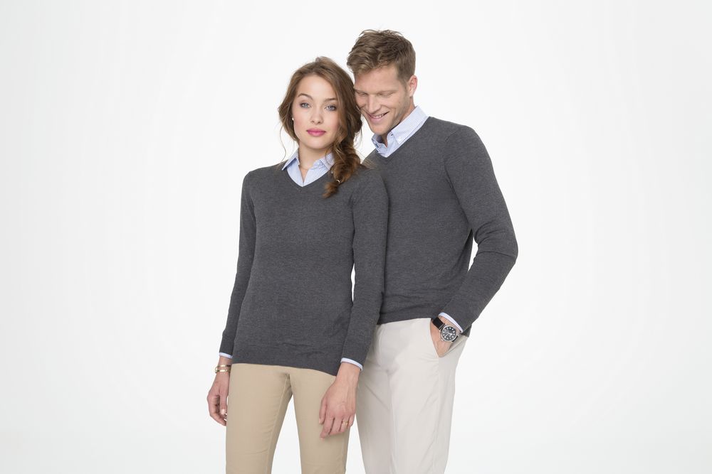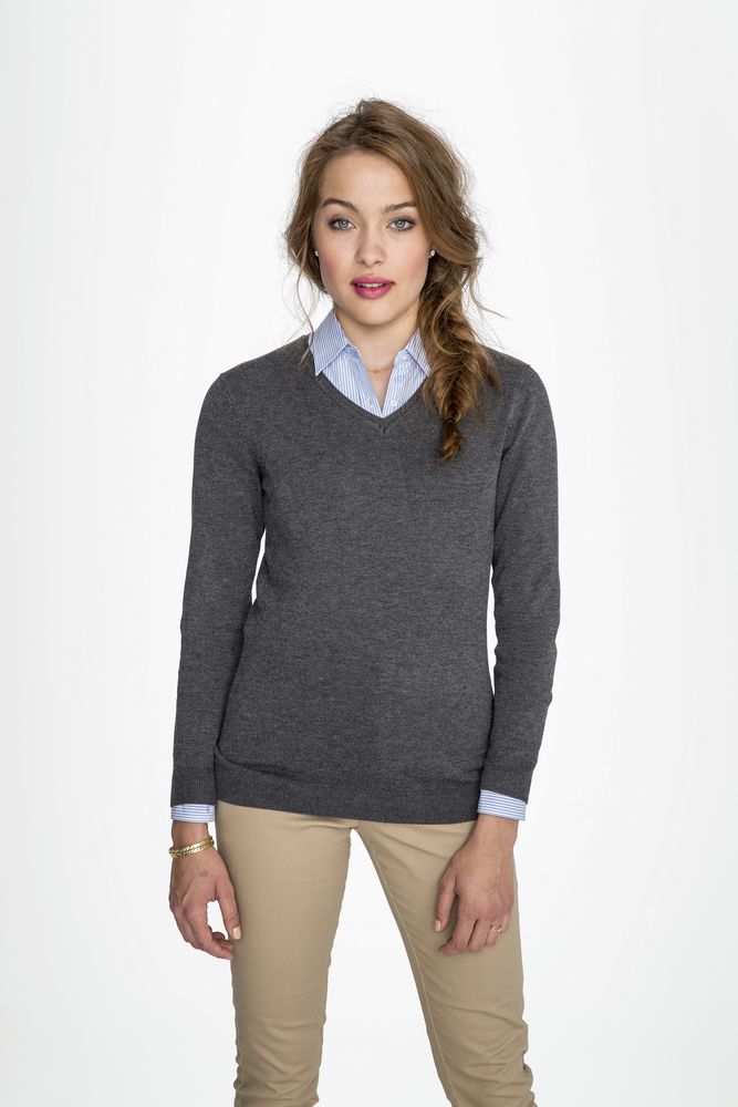 Приталенный джемпер с V-образной горловиной, который отлично сидит на фигуре.